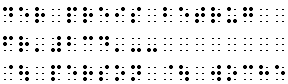 Der Streckenstrich setzt sich ebenfalls aus den Punkten 6 sowie 3, 6 zusammen; das Leerfeld davor und dahinter entfällt in der Regel, z.B.: